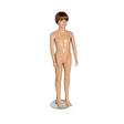 The Child Mannequin R337 features realistic proportions and a natural posture, enhanced with detailed facial features for authentic display. Its adjustable head and arms allow for versatile posing, while separable body parts facilitate easy dressing and quick assembly. The glass base, secured with a heel support, ensures stability and complements its modern aesthetic. Wigs are sold separately to customize the look further, making this mannequin an expert choice for showcasing children’s fashion.