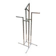 This Adjustable 4 Arm Rail features two straight arms and two waterfall arms, each independently adjustable in 3-inch increments from 48" to 72". Constructed with a durable 1" square tube base and 83" square tube inner uprights and arms, it ensures sturdy support and reliable performance. The adjustable feet provide stability on uneven surfaces, while the mirror finish chrome adds a sleek, professional look ideal for retail environments requiring flexible display solutions.