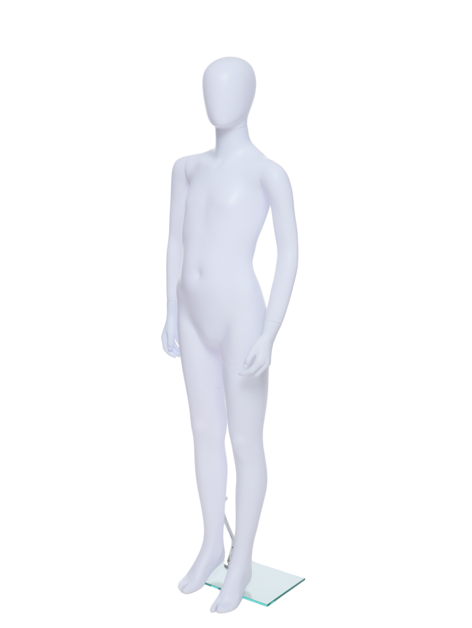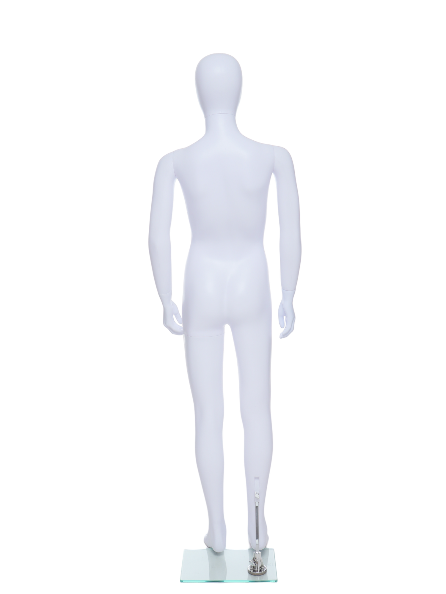 This unisex child mannequin features a full-bodied design with a smooth matt white finish and a minimalist egg-shaped head, suitable for showcasing a broad range of children’s clothing and accessories. Made from durable, virtually unbreakable plastic, it ensures resilience and longevity. The mannequin includes an 8mm thick toughened glass base for stability, plus a calf and foot kit to accommodate socks and shoes. Adjustable head and arms allow for multiple poses, while its lightweight construction supports easy handling and transport, making it ideal for professional retail displays.