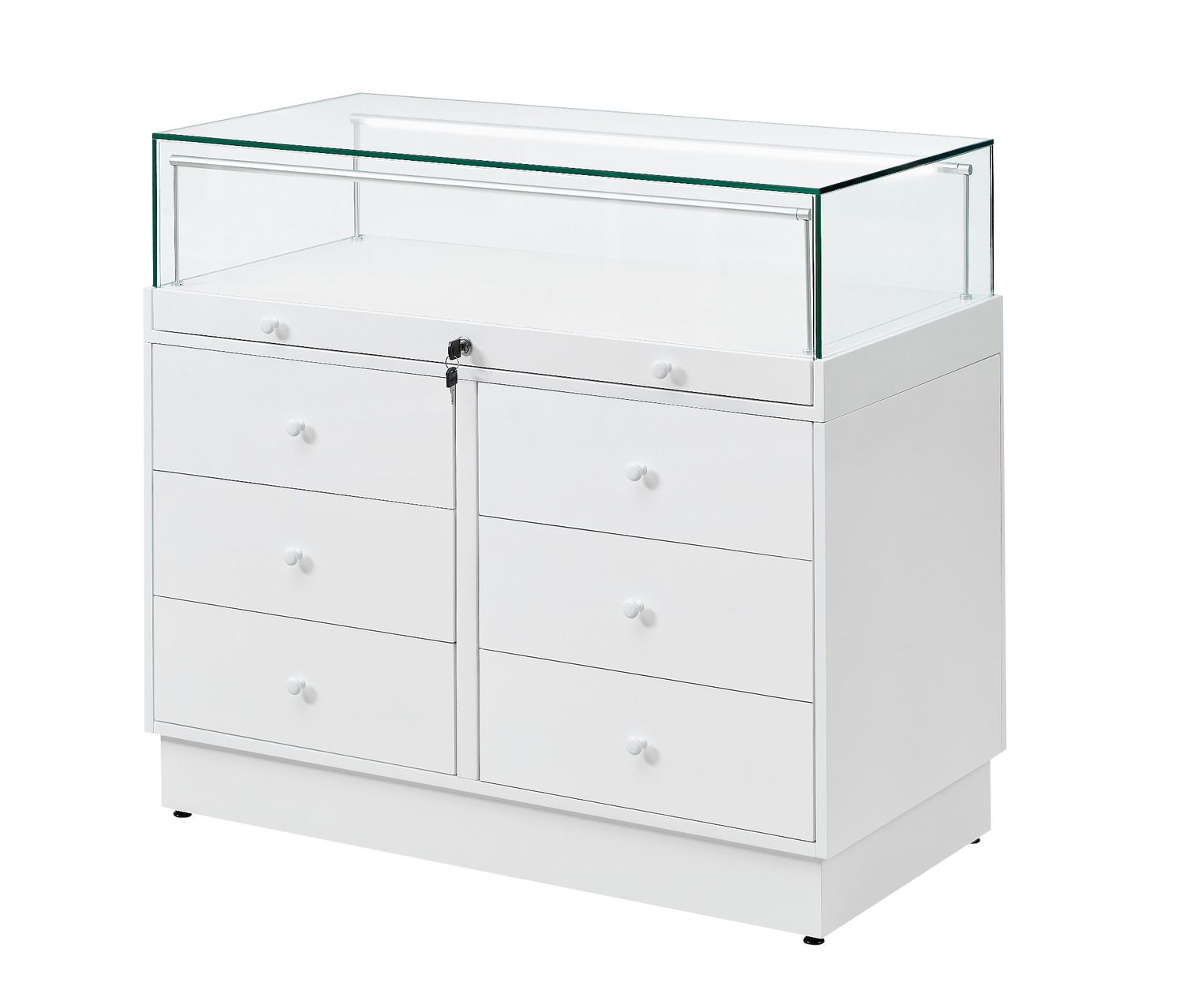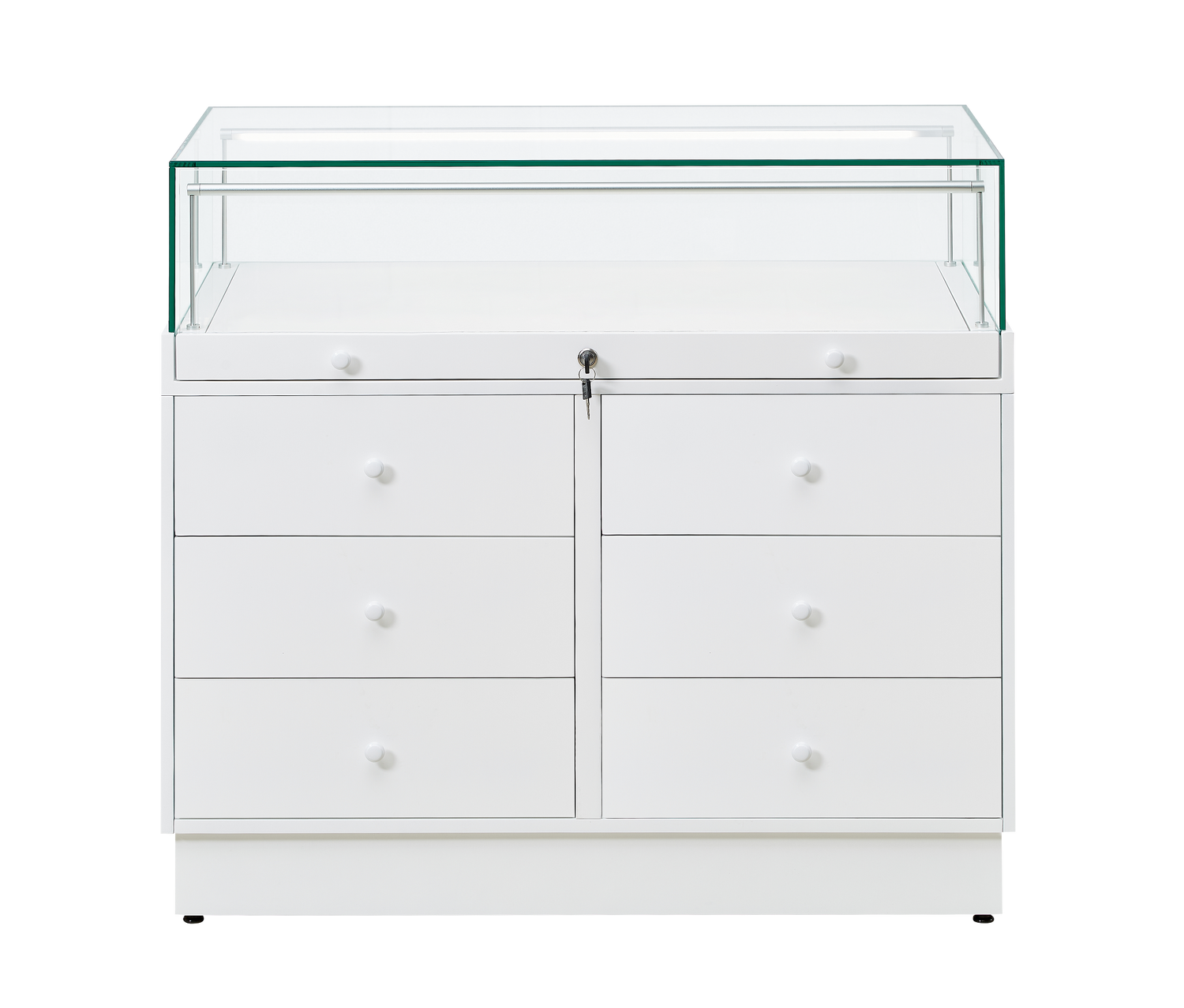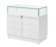 The Counter Display Case R2714W is a refined retail solution engineered for discerning establishments including jewellery boutiques, museums, and galleries. The showcase features premium 8mm toughened safety glass with dual adjustable LED strip lights, delivering exceptional product visibility and professional presentation. Storage flexibility is paramount with two sets of three drawers underneath provide convenient stock organisation. Delivered across four cartons for manageable transport, assembly is streamlined with a pre-assembled glass cabinet and flat-packed cupboard components accompanied by comprehensive instructions.