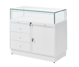 The Counter Display Case R2715W is a refined retail solution engineered for discerning establishments including jewellery boutiques, museums, and galleries. The showcase features premium 8mm toughened safety glass with dual adjustable LED strip lights, delivering exceptional product visibility and professional presentation. Storage flexibility is paramount—a secure lockable cupboard on one side safeguards high-value inventory, whilst three accessible drawers on the opposite side provide convenient stock organisation. Delivered across four cartons for manageable transport, assembly is streamlined with a pre-assembled glass cabinet and flat-packed cupboard components accompanied by comprehensive instructions.