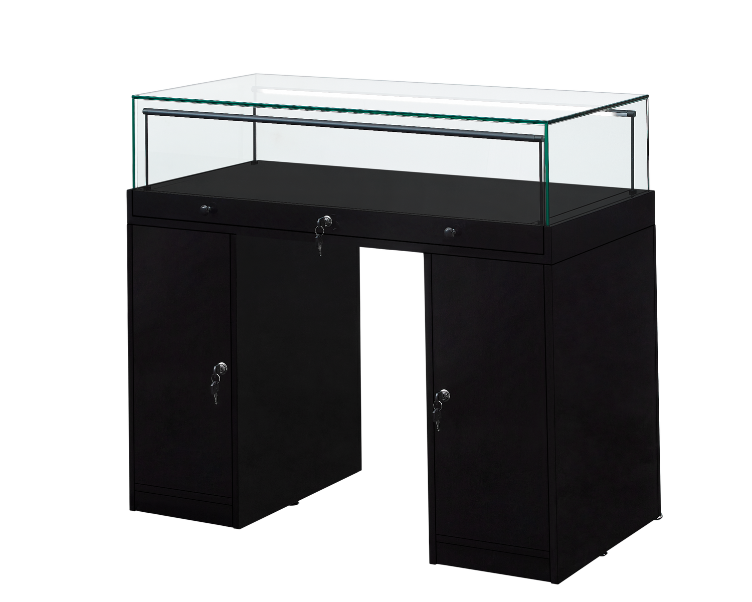 The Counter Display Case R2721B is a refined retail solution engineered for discerning establishments including jewellery boutiques, museums, and galleries. The showcase features premium 8mm toughened safety glass with dual adjustable LED strip lights, delivering exceptional product visibility and professional presentation. Storage flexibility is paramount—a secure set of two lockable cupboards underneath safeguards high-value inventory, whilst provide convenient stock organisation. Delivered across three cartons for manageable transport, assembly is streamlined with a pre-assembled glass cabinet and flat-packed cupboard components accompanied by comprehensive instructions.
