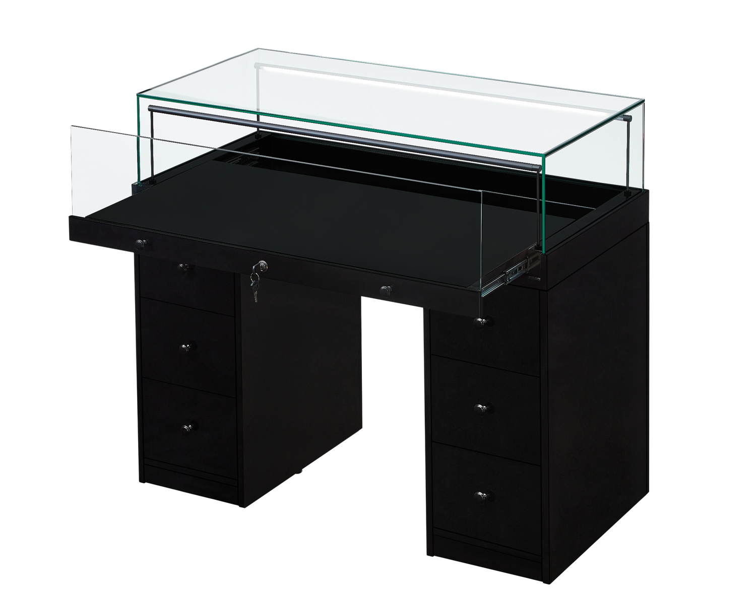 The Counter Display Case R2722B is a refined retail solution engineered for discerning establishments including jewellery boutiques, museums, and galleries. The showcase features premium 8mm toughened safety glass with dual adjustable LED strip lights, delivering exceptional product visibility and professional presentation. Storage flexibility is paramount, with two sets of three accessible drawers underneath the display area provide convenient stock organisation. Delivered across three cartons for manageable transport, assembly is streamlined with a pre-assembled glass cabinet and flat-packed cupboard components accompanied by comprehensive instructions.