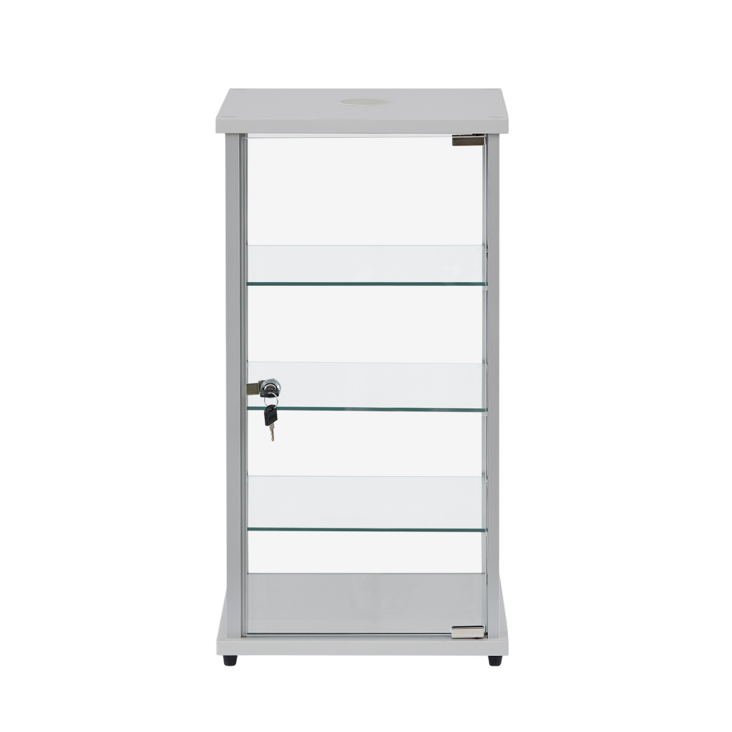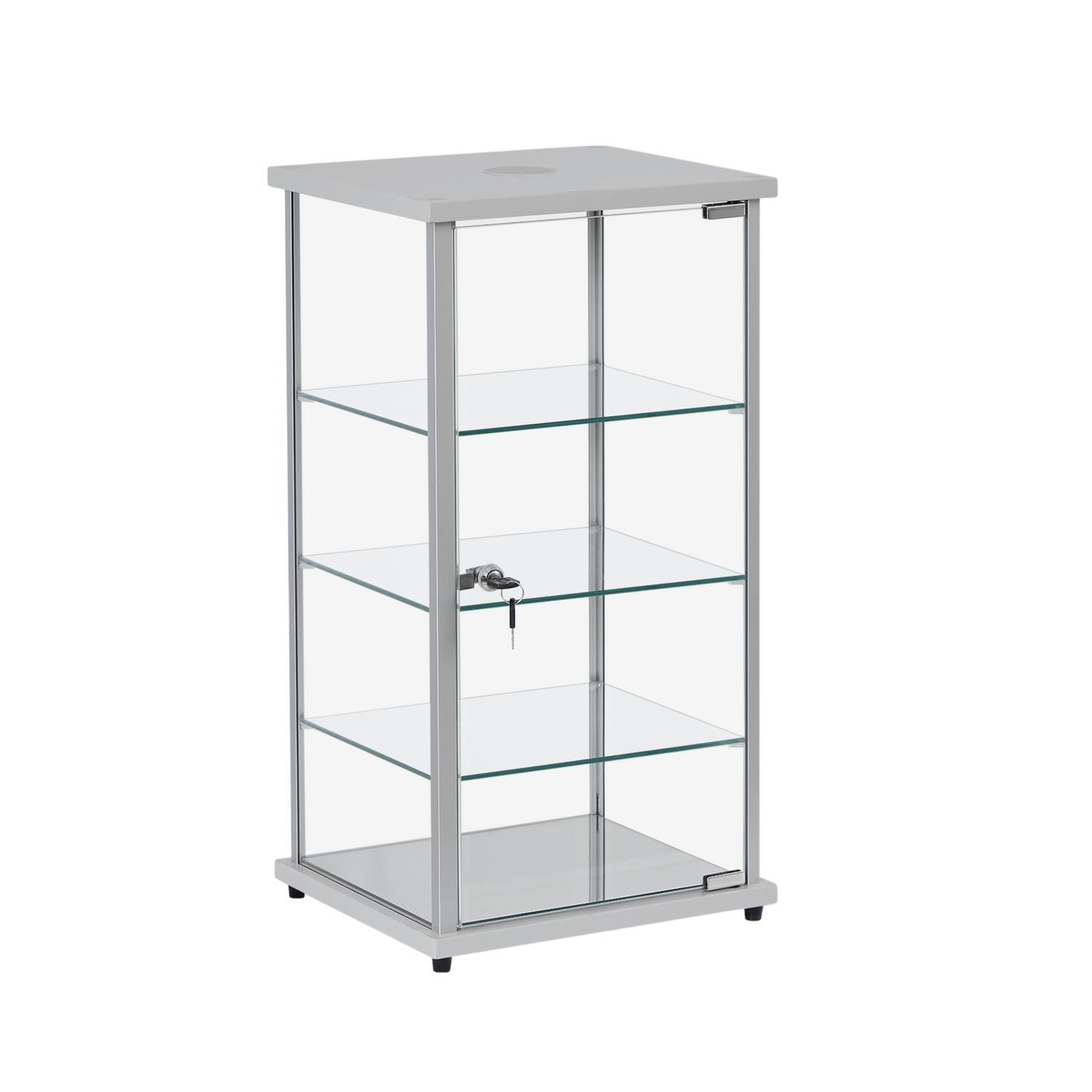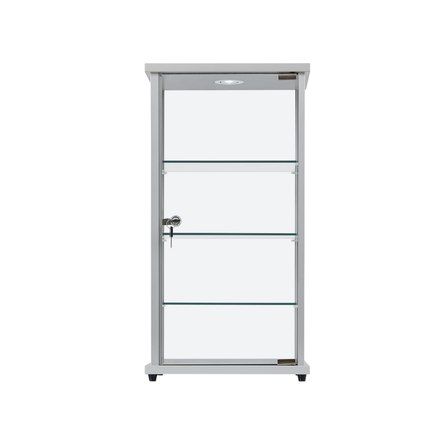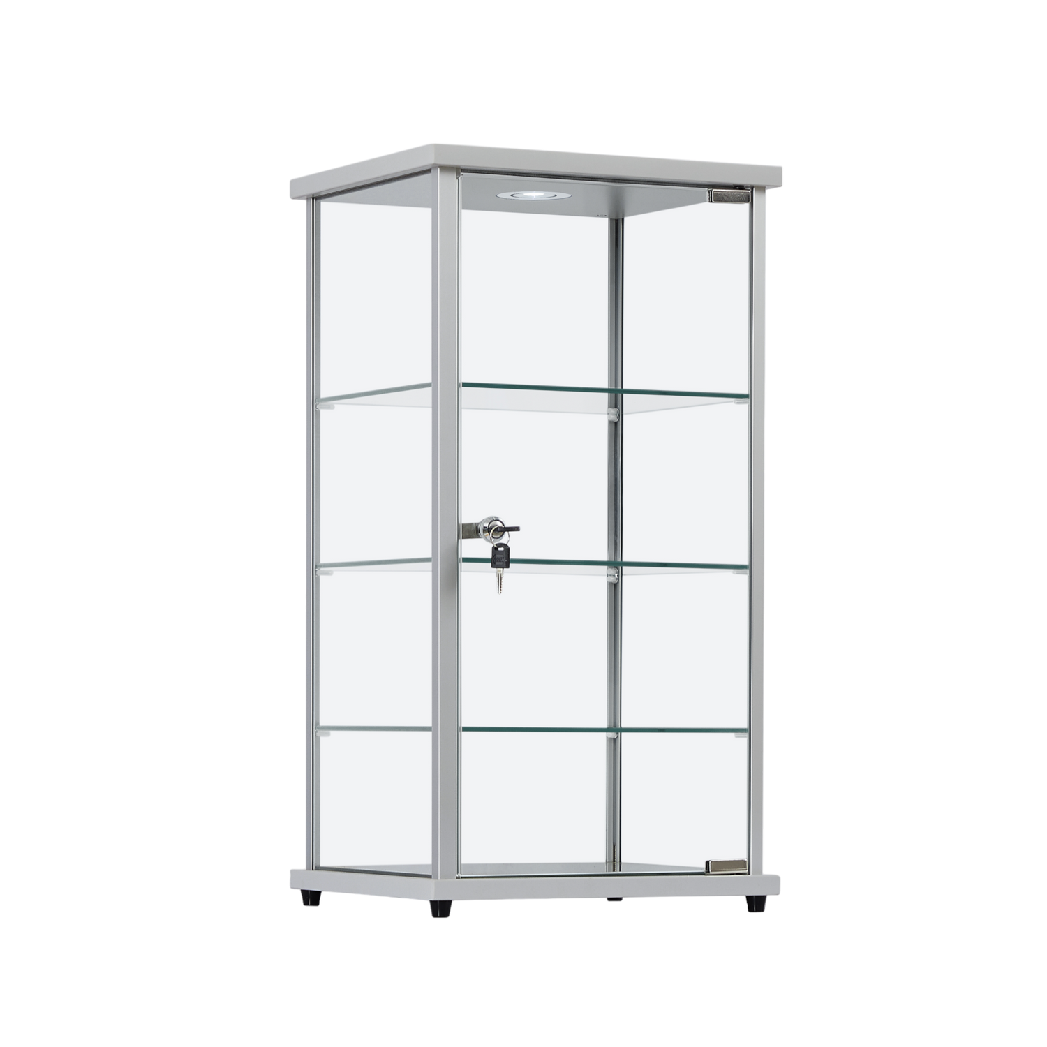 The Counter Top Display Cabinet - R2504B features a sleek Silver anodised aluminium frame combined with 6mm toughened safety glass, ensuring both durability and secure display for valuable items. Equipped with a fixed 4W LED downlight, it provides clear illumination to enhance the visibility of gifts, jewellery, cosmetics, electronics, and more. Perfect for retail fronts, reception areas, and high street shops, this compact showcase offers an elegant and practical solution to present your merchandise securely while attracting customer attention.