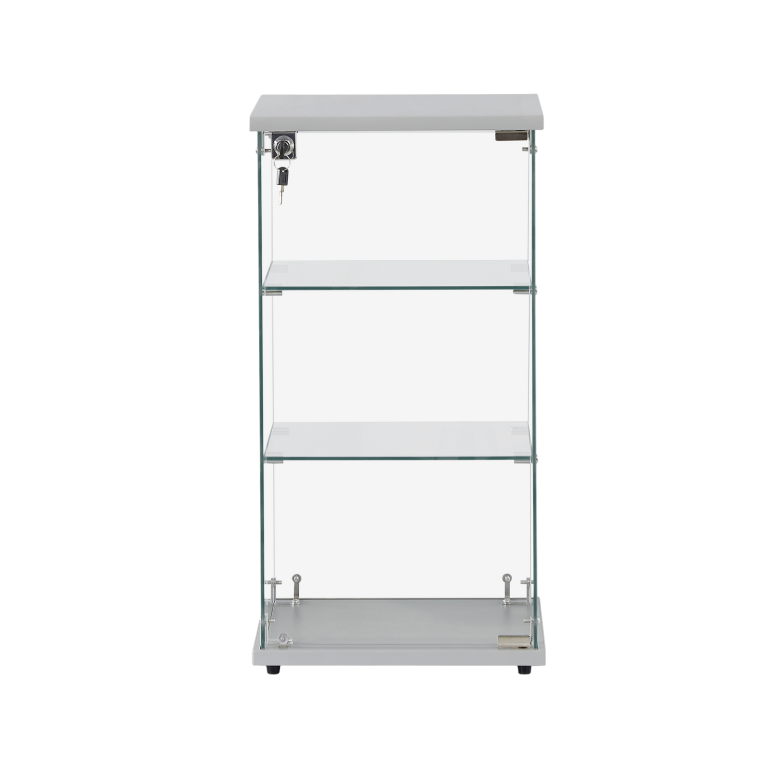 The Counter Top Display Cabinet - R2505S features a frameless design with a silver finish base and top shelf, combined with 6mm toughened safety glass for secure and elegant presentation. Its lockable display area ensures the protection of valuable items such as gifts, jewellery, cosmetics, electronics, and fireworks. Delivered flat pack for easy on-site self-assembly, this showcase is an ideal solution for retail environments, reception areas, and high street stores seeking a stylish yet secure front-of-house display.