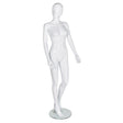 This full-bodied female mannequin features a gloss white finish and an abstract head, making it perfect for showcasing a variety of clothing, accessories, and jewellery. It includes an 8mm thick toughened glass base and a calf and foot kit for displaying socks and shoes. Made from durable plastic, the mannequin is virtually unbreakable and hard wearing. Adjustable head and arms allow versatile posing options, while its lightweight design ensures easy handling and transportation. Ideal for professional retail displays requiring both style and practicality.