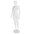 The Female Mannequin - R314 features a full-bodied design with a gloss white finish and an abstract head, perfect for showcasing a variety of women's clothing, accessories, and jewelry. Constructed from durable plastic, it is virtually unbreakable and built to last. The mannequin includes an 8mm thick toughened glass base and a calf and foot kit for displaying socks and shoes. Its adjustable head and arms allow for versatile posing, while its lightweight build ensures easy handling and movement. Ideal for professional retail displays requiring both style and functionality.
