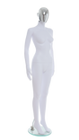 This female mannequin is constructed from virtually unbreakable plastic for durability in busy retail settings. It features an 8mm thick toughened glass base with a calf spigot fitting to easily display footwear items. With adjustable head and arms, it offers versatile posing options to highlight your products effectively. The lightweight design simplifies handling and repositioning. Its distinctive Chrome egg head with ears contrasts with the sleek white finish, creating a modern and eye-catching presentation to attract customer attention. Ideal for showcasing a variety of apparel and accessories with professional style.
