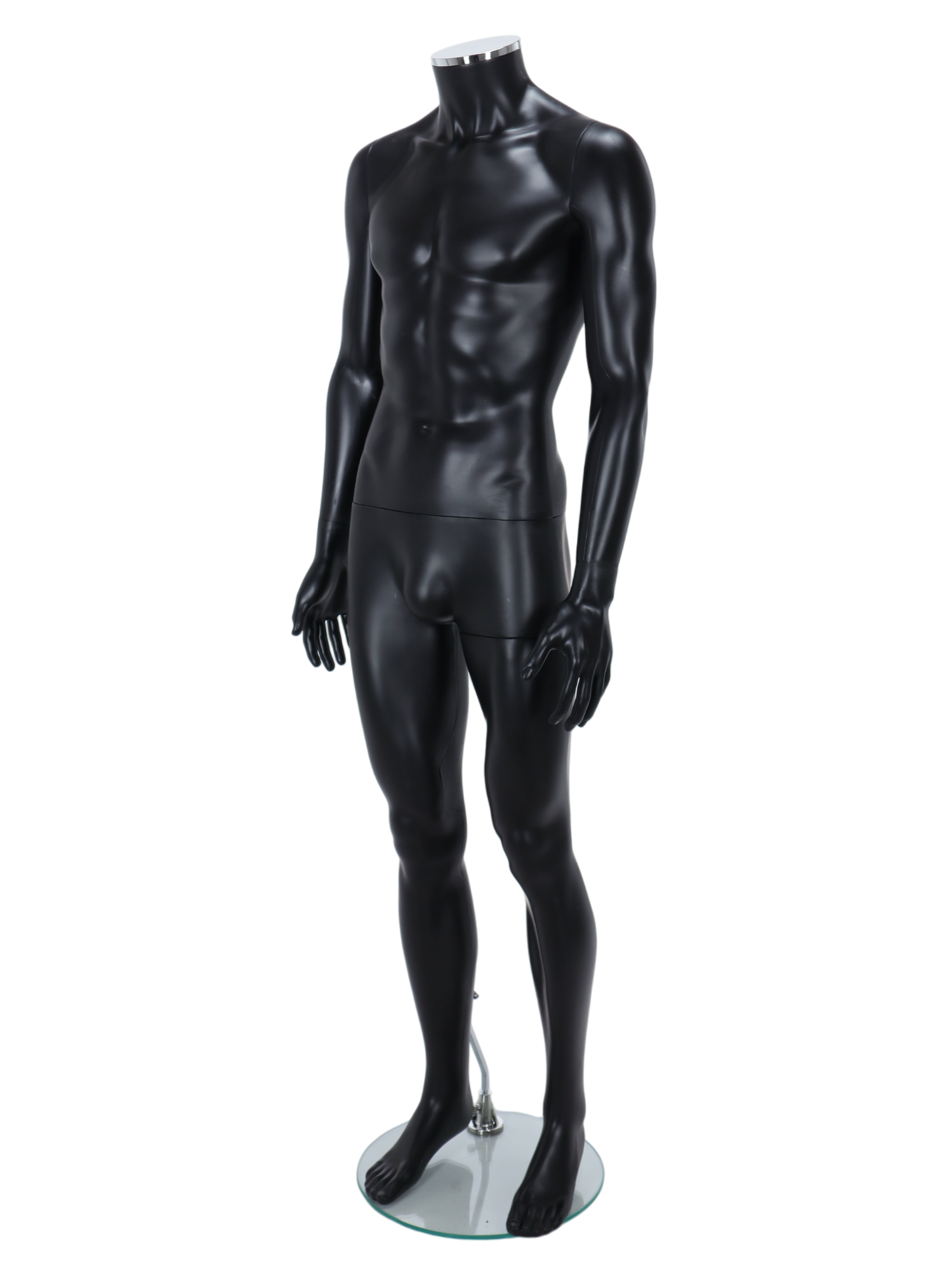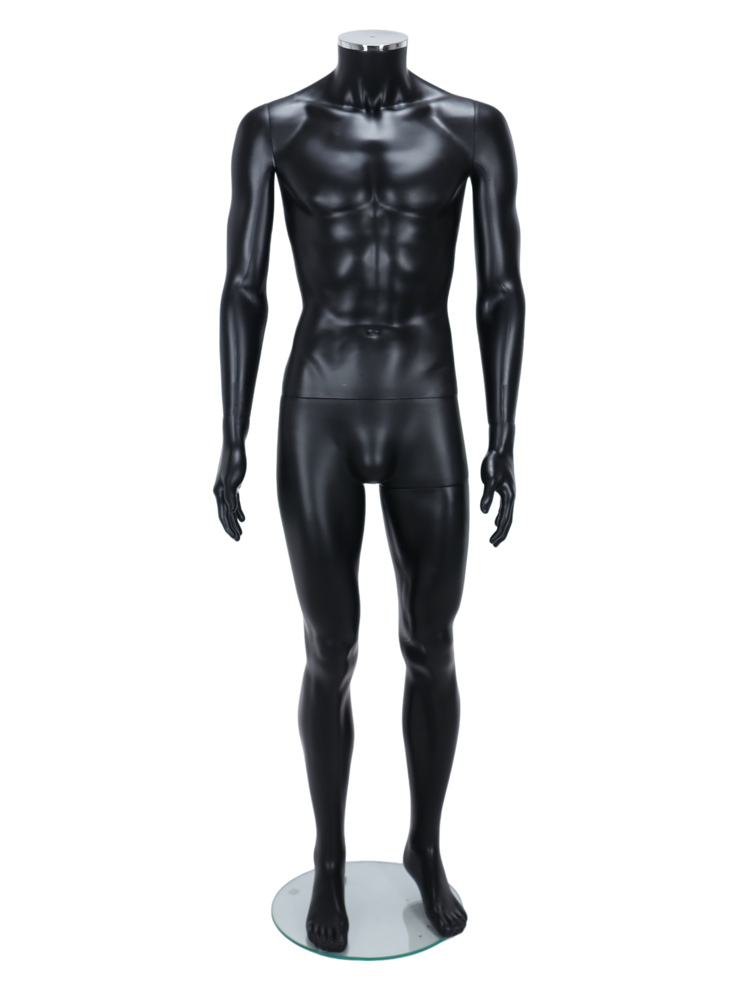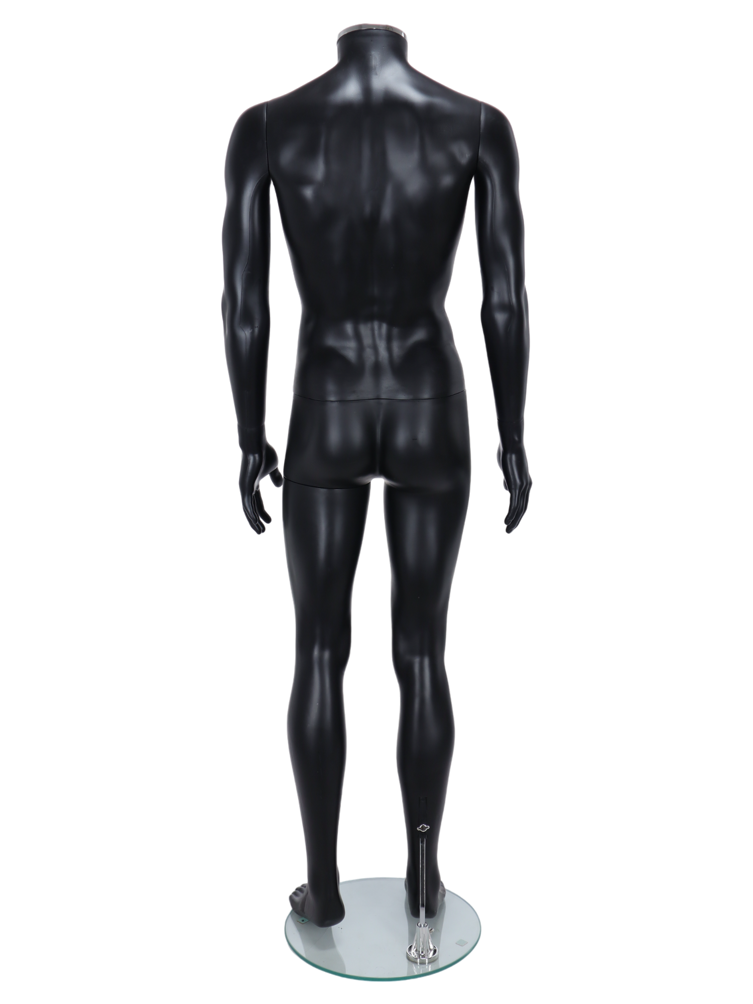 The Male Mannequin R333B offers a lifelike silhouette with natural posture, making it an expert choice for displaying fashion items authentically. Its adjustable arms and separable design simplify dressing and assembly. A chrome-finished neck adds a refined touch, while the glass base with heel support ensures stability and facilitates shoe fitting, completing its sleek, contemporary appeal.