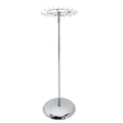 This Single Tier Revolving Stand combines functionality with sleek design, featuring a 19" diameter chrome ring fitted with 20 hooks, each 3" long, ideal for organizing belts, ties, scarves, and similar accessories. Standing 54" tall on a sturdy 18" weighted base with a 1" diameter upright, it offers both stability and smooth rotation. Its mirror finish chrome surface ensures a professional look suitable for retail or display environments, making accessory presentation both accessible and visually appealing.